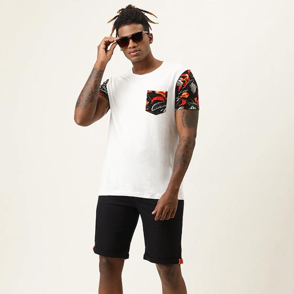 Black solid mid-rise regular shorts, has 5 pockets, button closure