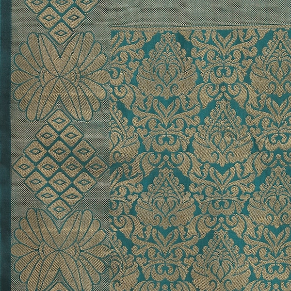 • Teal green and gold-toned woven design dupatta, has tassels border